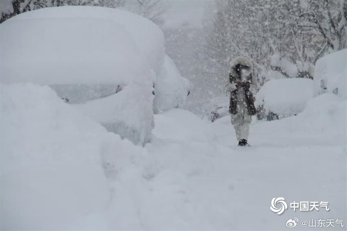 连日来,山东烟台、威海地区遭遇极端降雪。12月19日9时至21日8时,烟台站降雪量28.6毫米,积雪深度52厘米,突破1951年有气象记录以来历史极值。截至22日8时,威海市文登区积雪深度达74厘米,打破山东全省最大积雪深度纪录。持续低温造成道路积雪结冰,严重影响交通出行。社交平台上,有网友留言:“山东半岛,宛如北极科考。”